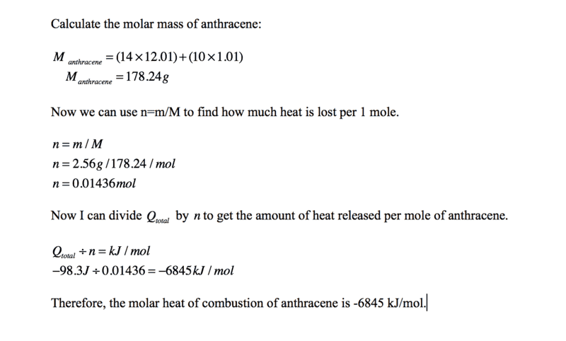 Δh foa = 433 kj/mol. See full list on thoughtco.com 8 al(s) + 3 fe3o4(s) → 4 al2o3(s) + 9 fe(s) solution δh for a reaction is equal to the sum of the heats of formation of the product compounds minus the sum of the heats of formation of the reactant compounds: Jun 19, 2020 · calculating heat of reaction from heat of formation step 1: See full list on thoughtco.com The standard heat of reaction is equal to the sum of all the standard heats of formation of the products minus the sum of all the standard heats of formation of the reactants. Δhºf c 2 h 2 = +227 kj/mole vpδhºf c 2 h 2 = 2 mol (+227 kj/mole) = +454 kj δhºf o 2 = 0.00 kj/mole The symbol for the standard heat of formation (also known as the standard enthalpy of formation) is δhf or δhf° where: This equation essentially states that the standard enthalpy change of formation is equal to the sum of the standard enthalpies of formation of the products minus the sum of the standard enthalpies of formation of the reactants. Known δ h f o for no ( g) = 90.4 kj/mol δ h f o for o 2 ( g) = 0. The standard heat of reaction can be calculated by using the following equation. Tables are available for heats of formation of common compoundsand ions in aqueous solution. What is the equation for heat of formation?